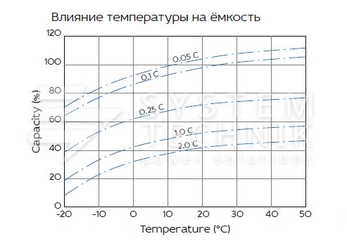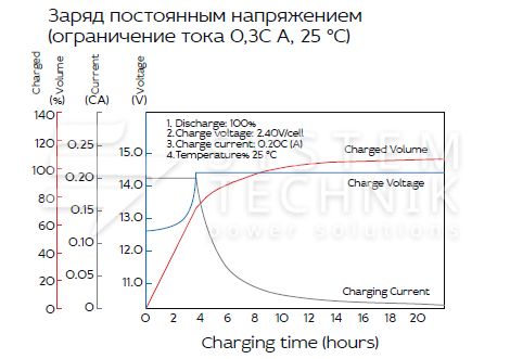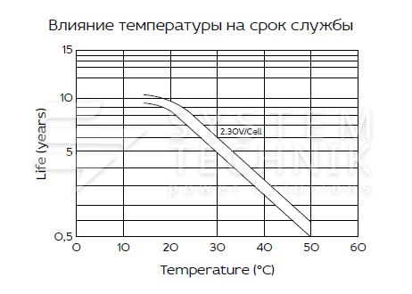 - Срок хранения без подзаряда: 6 мес. при 25°C;