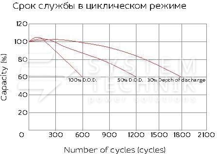 - Срок хранения без подзаряда: 6 мес. при 25°C;
