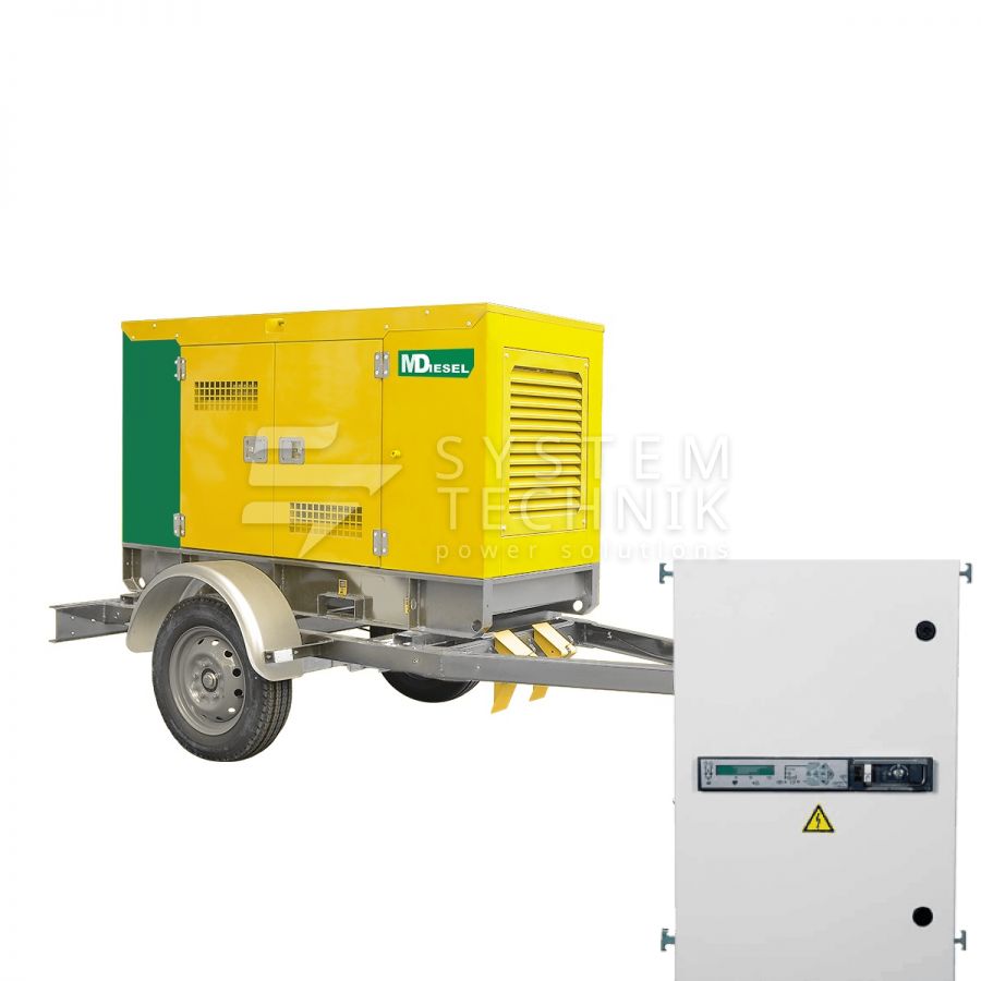 - MitsuDiesel МД ЭД-16-Т400-2РКМ29 в шумозащитном кожухе на шасси с АВР на прицепе