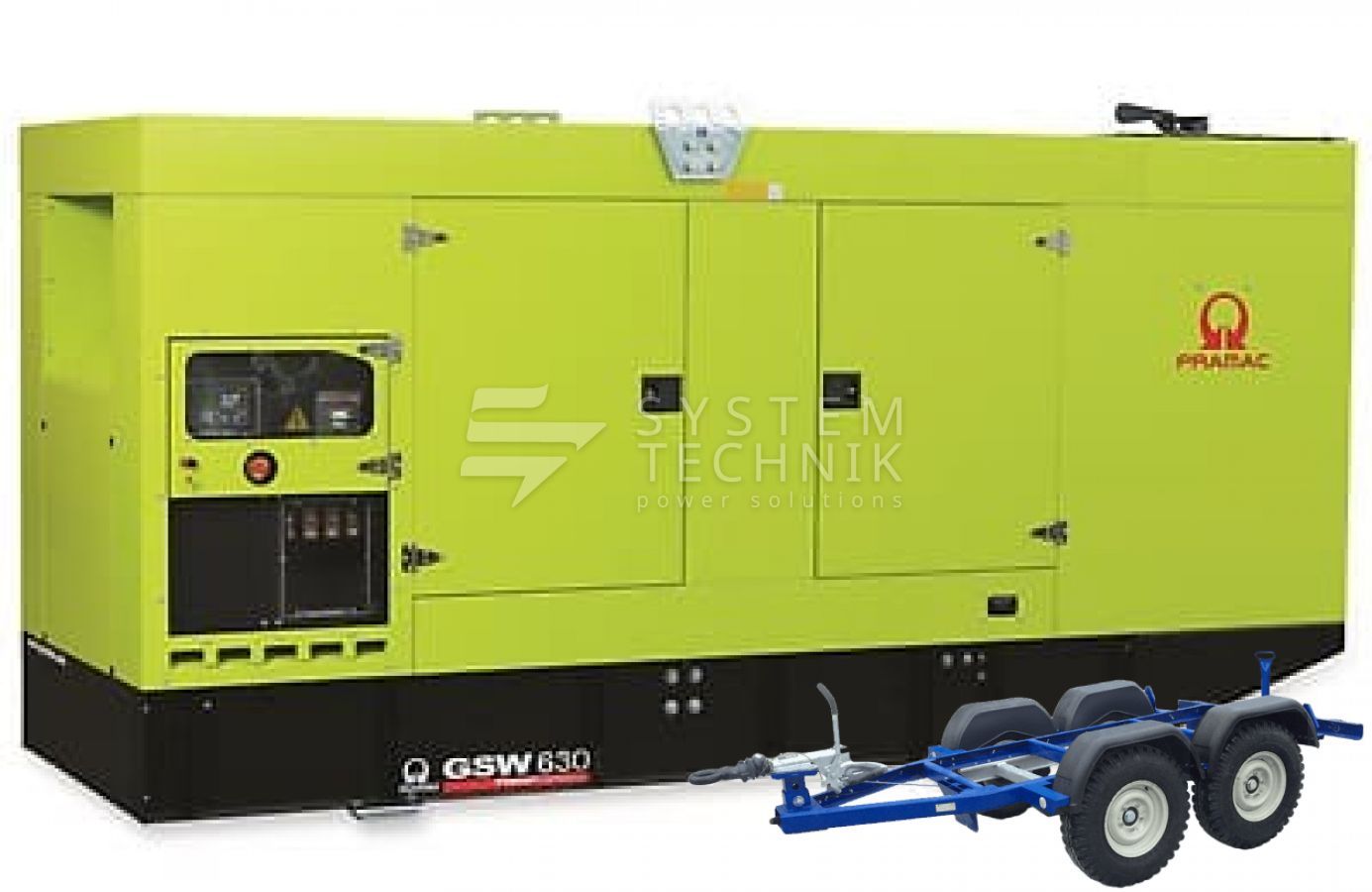 - Дизельный генератор Pramac GSW 630 DO 440V В кожухе на прицепе