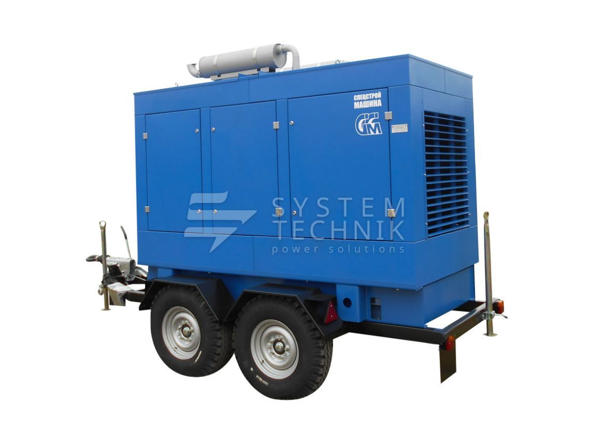 - ССМ ЭД-150-Т400-1РПМ2 в погодозащитном кожухе на шасси на прицепе