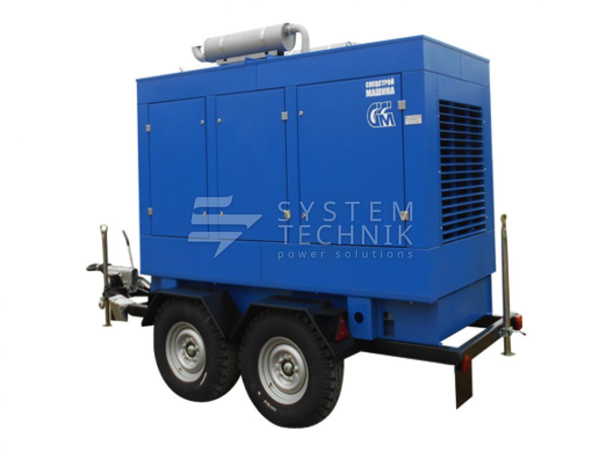 - ССМ ЭД-315-Т400-1РКМ2 в шумозащитном кожухе на шасси на прицепе