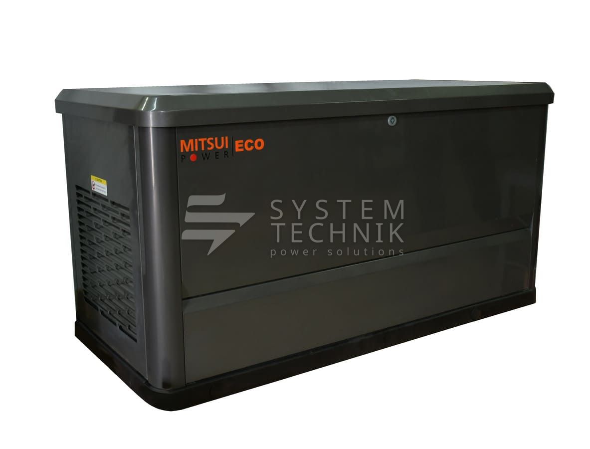 Трехфазная газовая электростанция в шумозащитном кожухе Mitsui Power Eco GM 12000 изготовлена на базе двигателя Mitsui С750 с воздушным охлаждением. Генератор предназначен для организации автономного электроснабжения домов, небольших коммерческих, социальных и бытовых объектов.